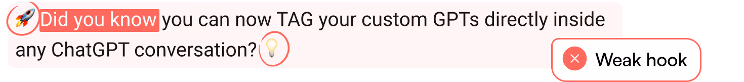 - Custom knowledge base - Trained on 189 hooks that already worked, expert strategies, and proven content frameworks